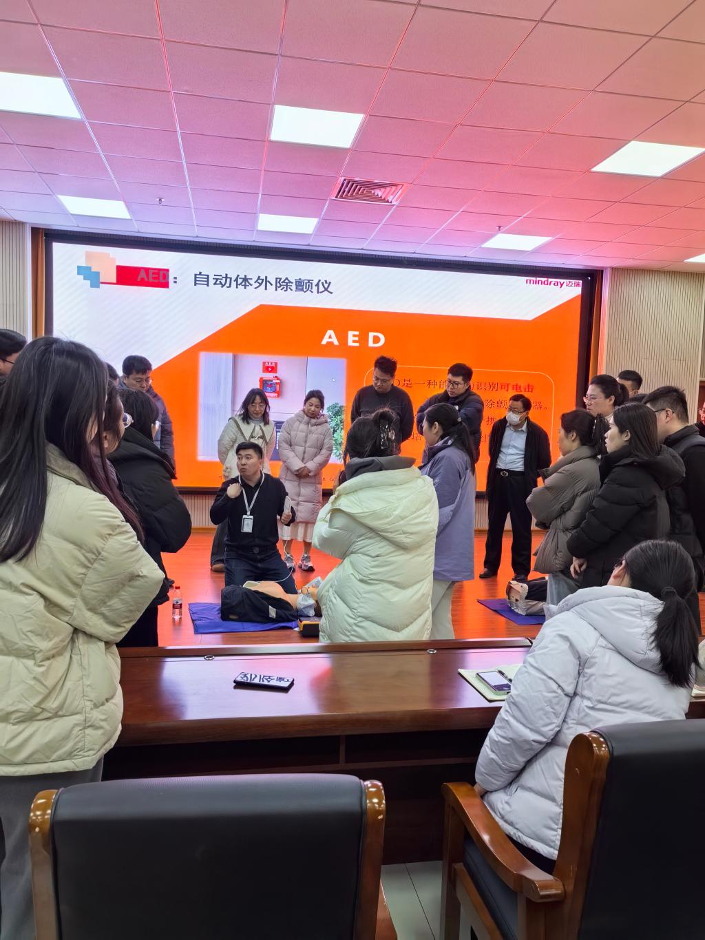 实操环节,李老师围绕胸外按压、人工呼吸、AED 使用、海姆立克急救四项核心技能详细讲解示范。讲解胸外按压时,强调按压位置、频率(每分钟 100—120 次)、深度(约 6 厘米)等要点;演示 AED 使用时,说明电极片粘贴位置及操作注意事项。辅导员积极练习,培训师巡回指导、纠正偏差。