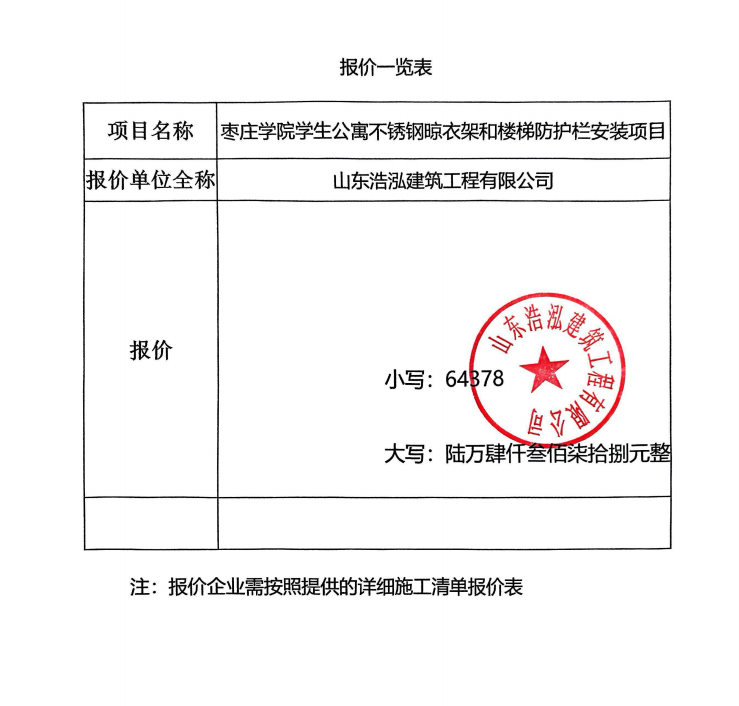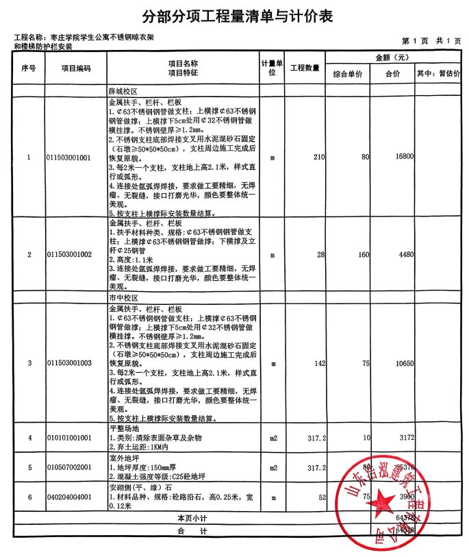 一、项目名称:枣庄学院学生公寓不锈钢晾衣架和楼梯防护栏安装项目