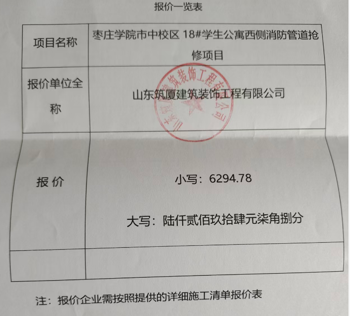 一、项目名称:枣庄学院学生公寓18#学生公寓西侧消防管道抢修项目