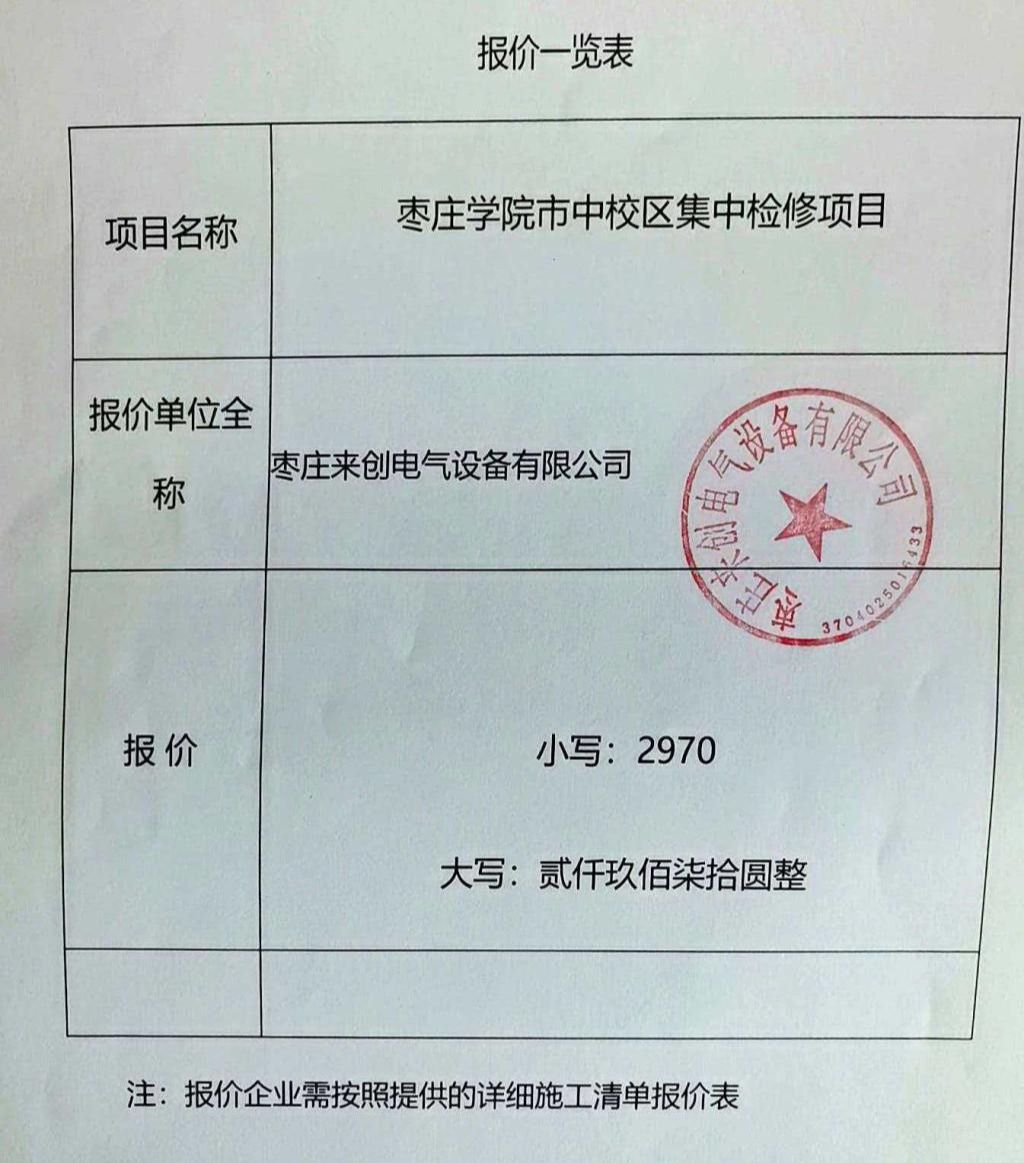一、项目名称:枣庄学院市中校区集中检修