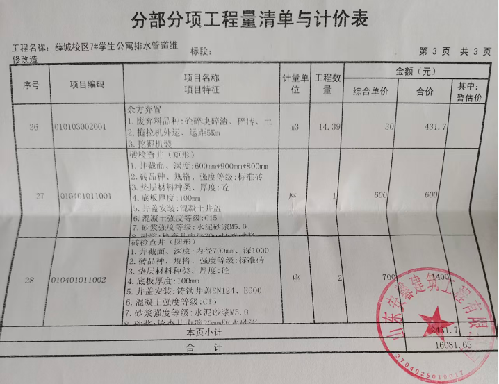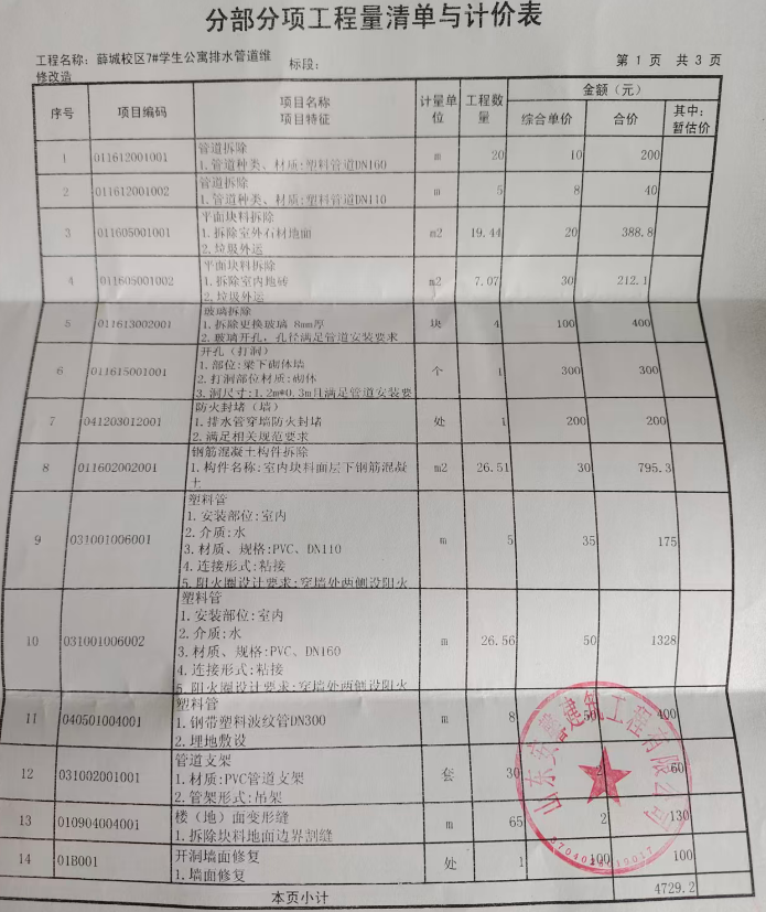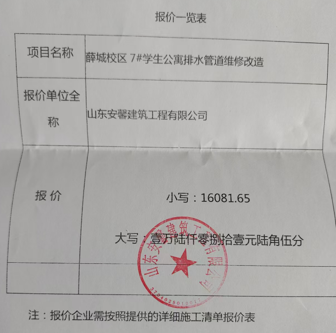 一、项目名称:枣庄学院薛城校区学生公寓7#学生公寓楼污水管道改造