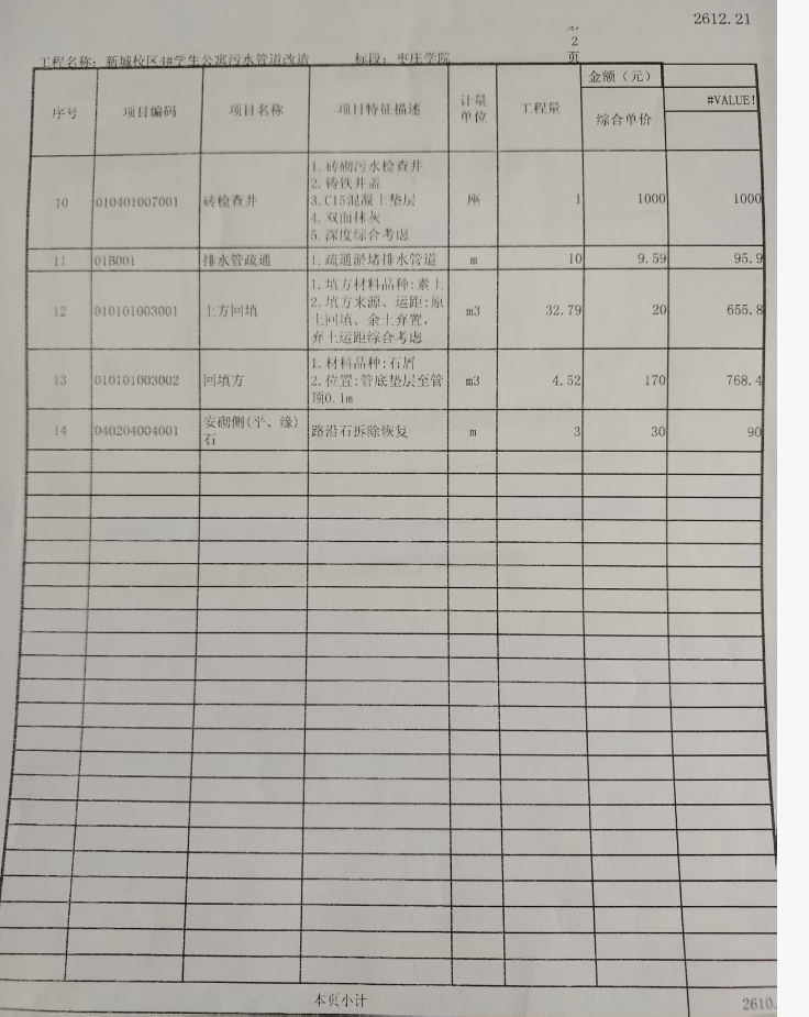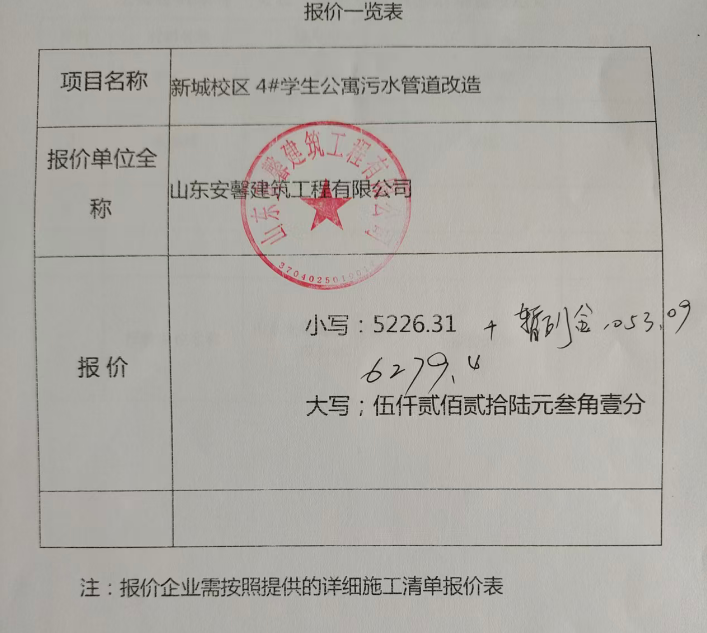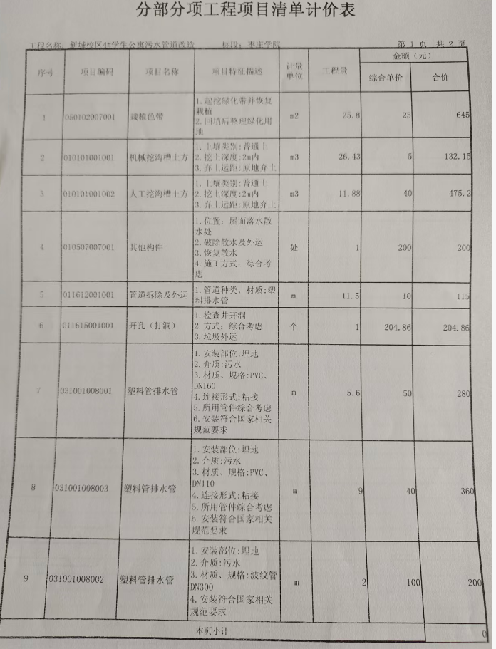 一、项目名称:枣庄学院薛城校区4号学生公寓污水管道维修项目