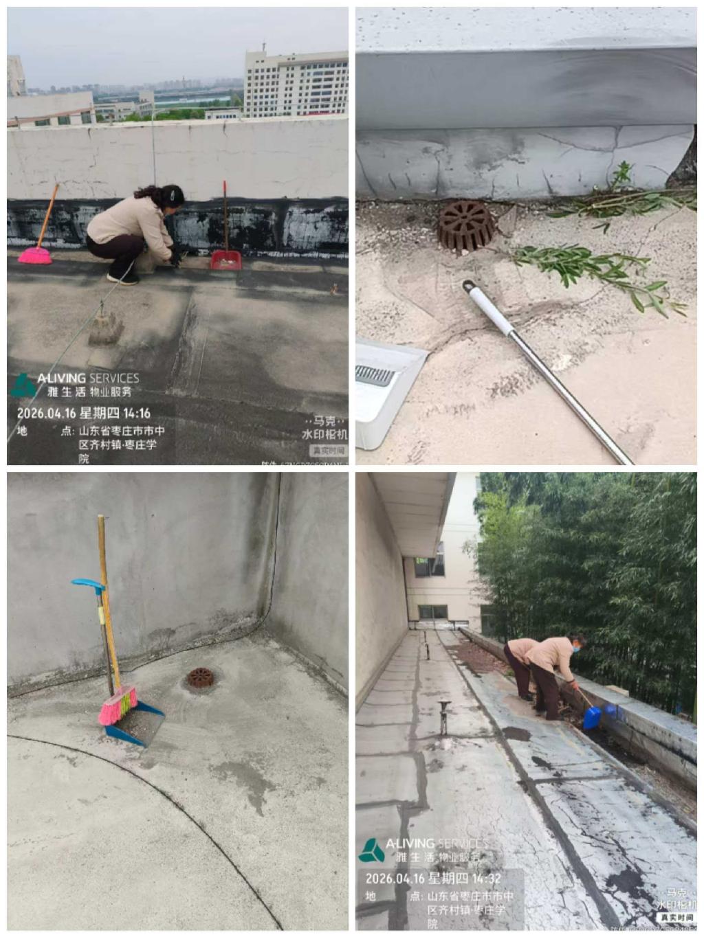 4.组织两校区物业公司清理楼宇楼顶杂物确保排水管畅通。